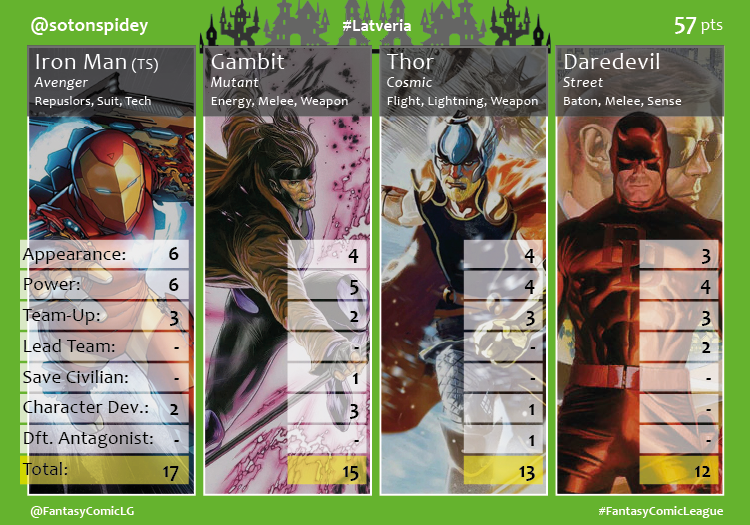 All is quiet on the Latveria front in the month of July. After several months of the country being in the spotlight, Latveria experienced a brief reprieve. The four-week month saw a significant decrease in activity for the Agents of the Fantasy Comic League, but they did not settle their battle for the top-ranking member until the end of the month. The number of threats to the country decreased by more than half. A total of five antagonists presented themselves to be quickly dispatched by the agents, but they rescued the same number of civilians (seven) as the previous month. Although three of those civilians were saved by Peter Parker alone. Despite his presence in Latveria, the “amazing” hero is becoming persona non grata in more of the other divisions across the League. Latveria’s recruited heroes also cut in half their number of character developments. The four biggest talked about moments came from Kitty Pryde and Colossus, who nixed their nuptials, and Rogue and Gambit, who took the former’s place at the altar. While wedding bells rang in celebration throughout the small capital village, the residents knew it was only a matter of time before they ring out in warning once more.