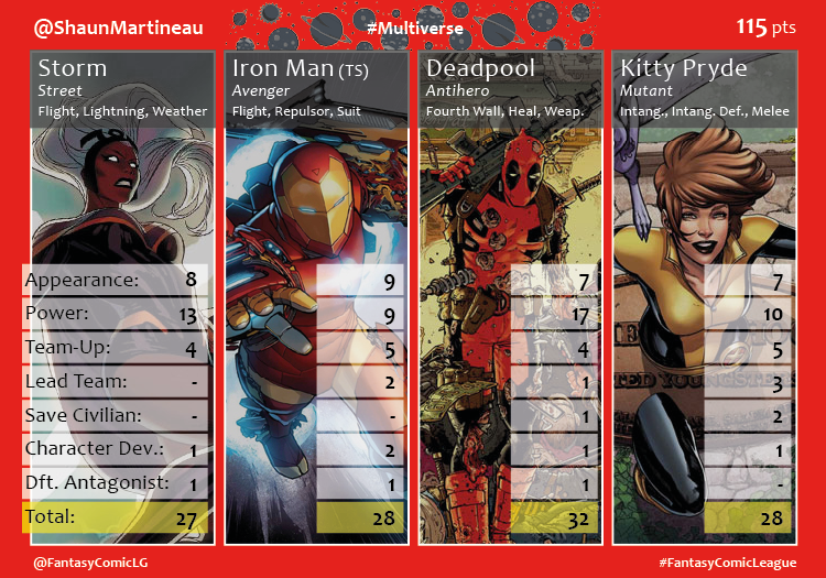 Agent Martineau– 10 points (@ShaunMartineau); Agent Brat– 8 points (@mvbrat91); Agent Bittner– 5 point (@mikebittner2099); Agent Lu– 3 points (@alufash87); Agent UN– 2 point (@UncannyNrdvrs)