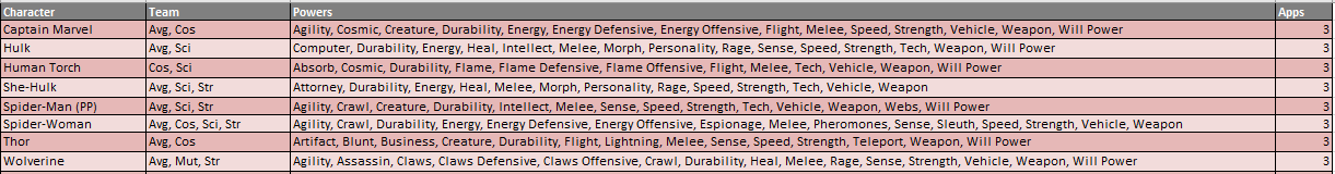 Please see the attached Power Summary file for further power clarifications and follow along with our #FantasyComicLeague tweets on Twitter for official power scoring and discussions. Appearance estimates, based on comic solicitations and cover artwork provided by the Marvel Database wiki, are meant as a guideline and not an indication of a specific draft order.