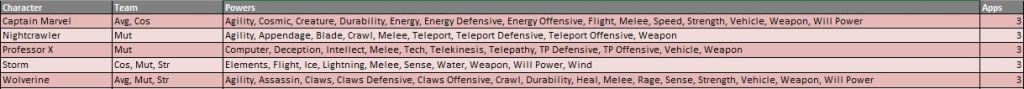 Please see the attached Power Summary file for further power clarifications and follow along with our #FantasyComicLeague tweets on Twitter for official power scoring and discussions. Appearance estimates, based on comic solicitations and cover artwork provided by the Marvel Database wiki, are meant as a guideline and not an indication of a specific draft order.