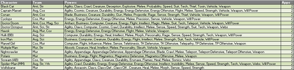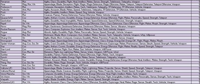 Please see the attached Power Summary file for further power clarifications and follow along with our #FantasyComicLeague tweets on Twitter for official power scoring and discussions. Appearance estimates, based on comic solicitations and cover artwork provided by the Marvel Database wiki, are meant as a guideline and not an indication of a specific draft order.