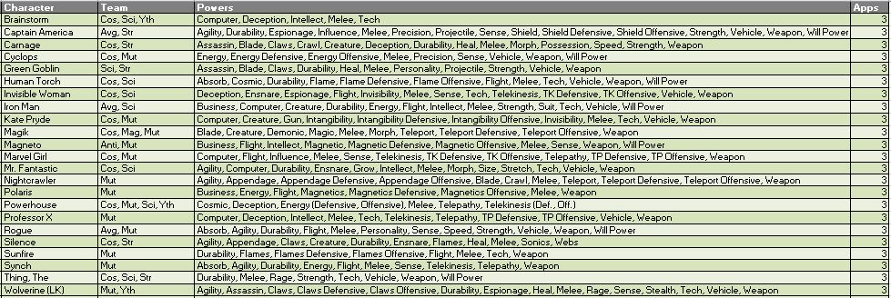 Please see the attached Power Summary file for further power clarifications and follow along with our #FantasyComicLeague tweets on Twitter for official power scoring and discussions. Appearance estimates, based on comic solicitations and cover artwork provided by the Marvel Database wiki, are meant as a guideline and not an indication of a specific draft order.