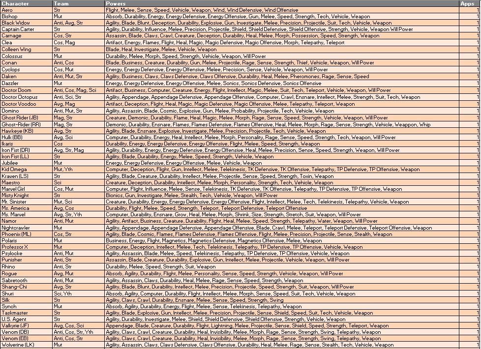 Please see the attached Power Summary file for further power clarifications and follow along with our #FantasyComicLeague tweets on Twitter for official power scoring and discussions. Appearance estimates, based on comic solicitations and cover artwork provided by the Marvel Database wiki, are meant as a guideline and not an indication of a specific draft order.