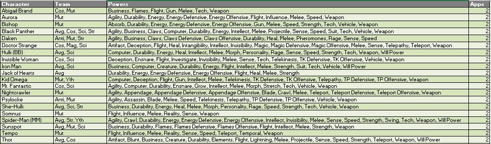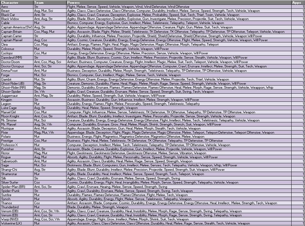 A few characters who are expected to make at least one appearance but not included in the below estimates include Carnage, Conan, the Eternals, Maestro, Nighthawk and X-Statix.