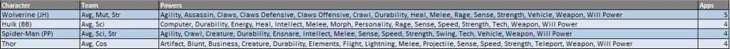 Appearance omissions: A few characters who are expected to make at least one appearance but not included in the below estimates include Carnage, members of the Eternals, Maestro, and members of X-Statix—though they do get a surprise guest appearance made by Doctor Strange in their latest title.