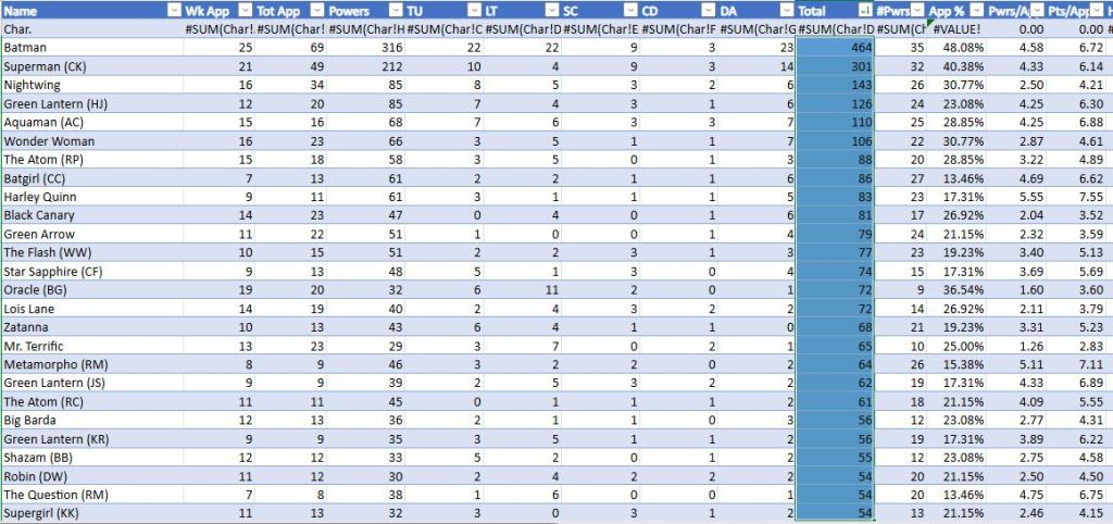 Key: TU – Team-Up; LT – Lead Team; SC – Save Civilian; CD – Character Development; DA – Defeat Antagonist.